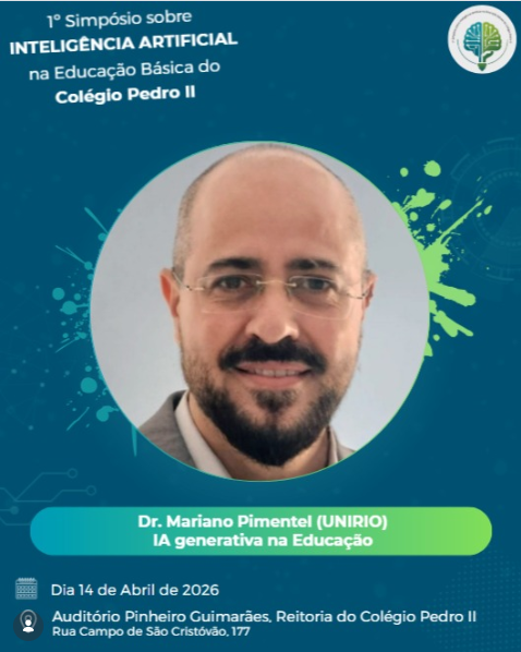 O Prof. Mariano Pimentel (PPGI-UNIRIO) abrirá o segundo dia do 1º Simpósio sobre Inteligência Artificial na Educação Básica, do Colégio Pedro II, com a palestra “IA generativa na Educação”. O Prof. Mariano vai explorar como ferramentas que criam textos, imagens e códigos estão mudando a forma como alunos e professores interagem com o conhecimento. Será que estamos diante de uma transformação drástica na produção de conteúdo escolar?